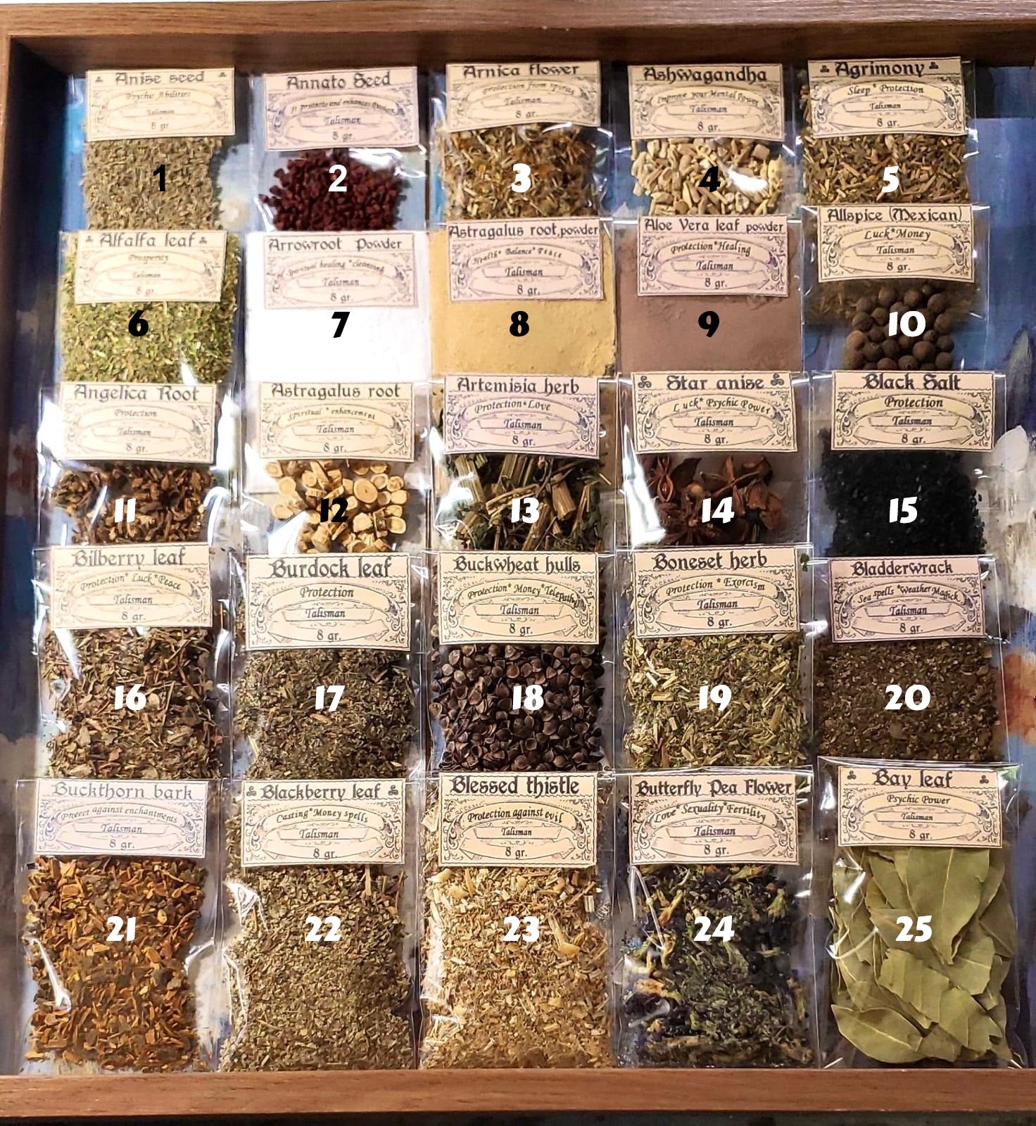 ♥ If you place an order with some herbs I do not have available I will be free to pick by random others instead.( As similar as possible), so if you do not pick up the numbers of herbs selected we will send you by random until complete the set.