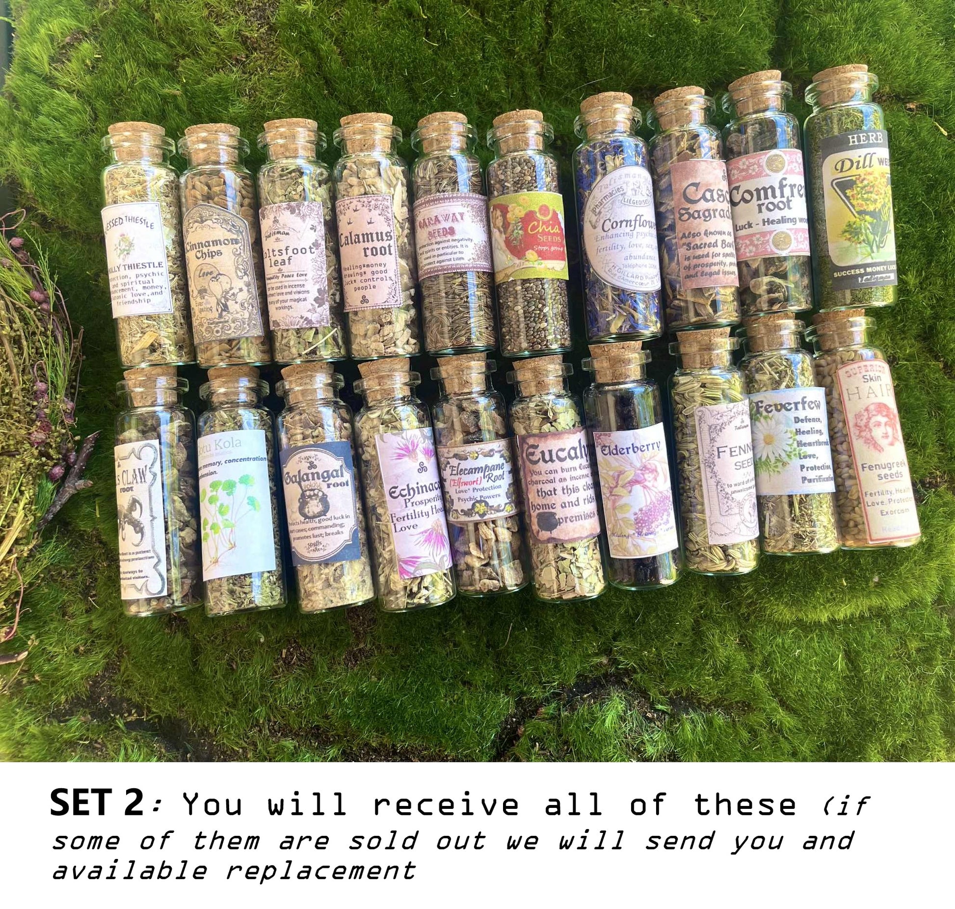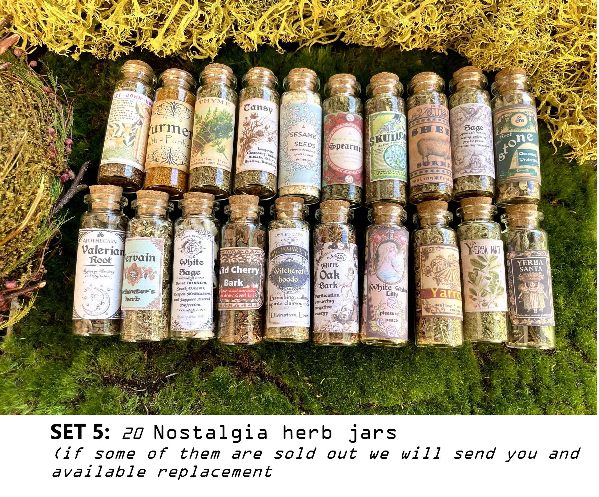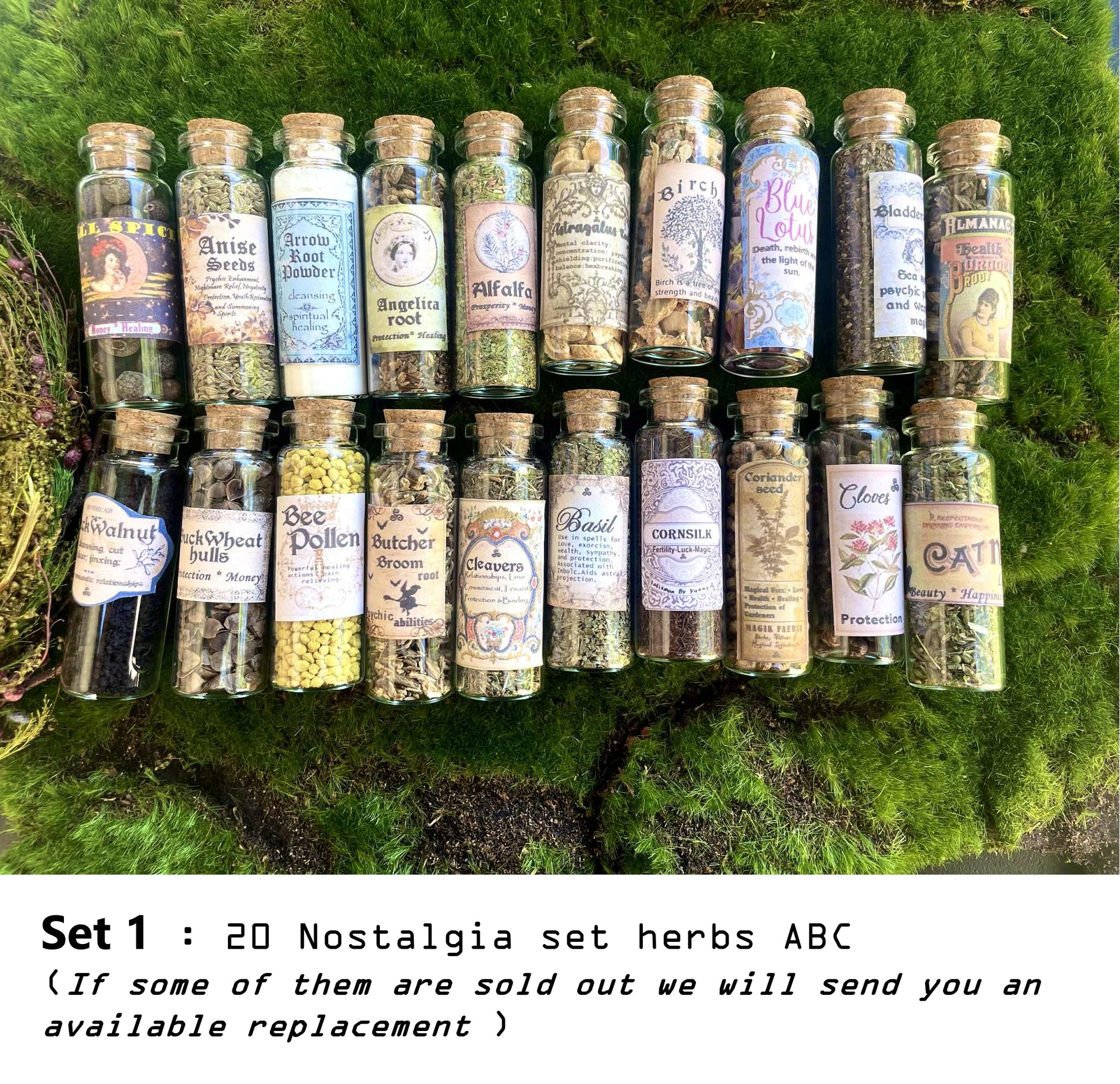 ♥ This listing is about small herbs jars. You can choose the set you want. Each set is about 20 herbs vials. You can choose all set (100 herbs jars).